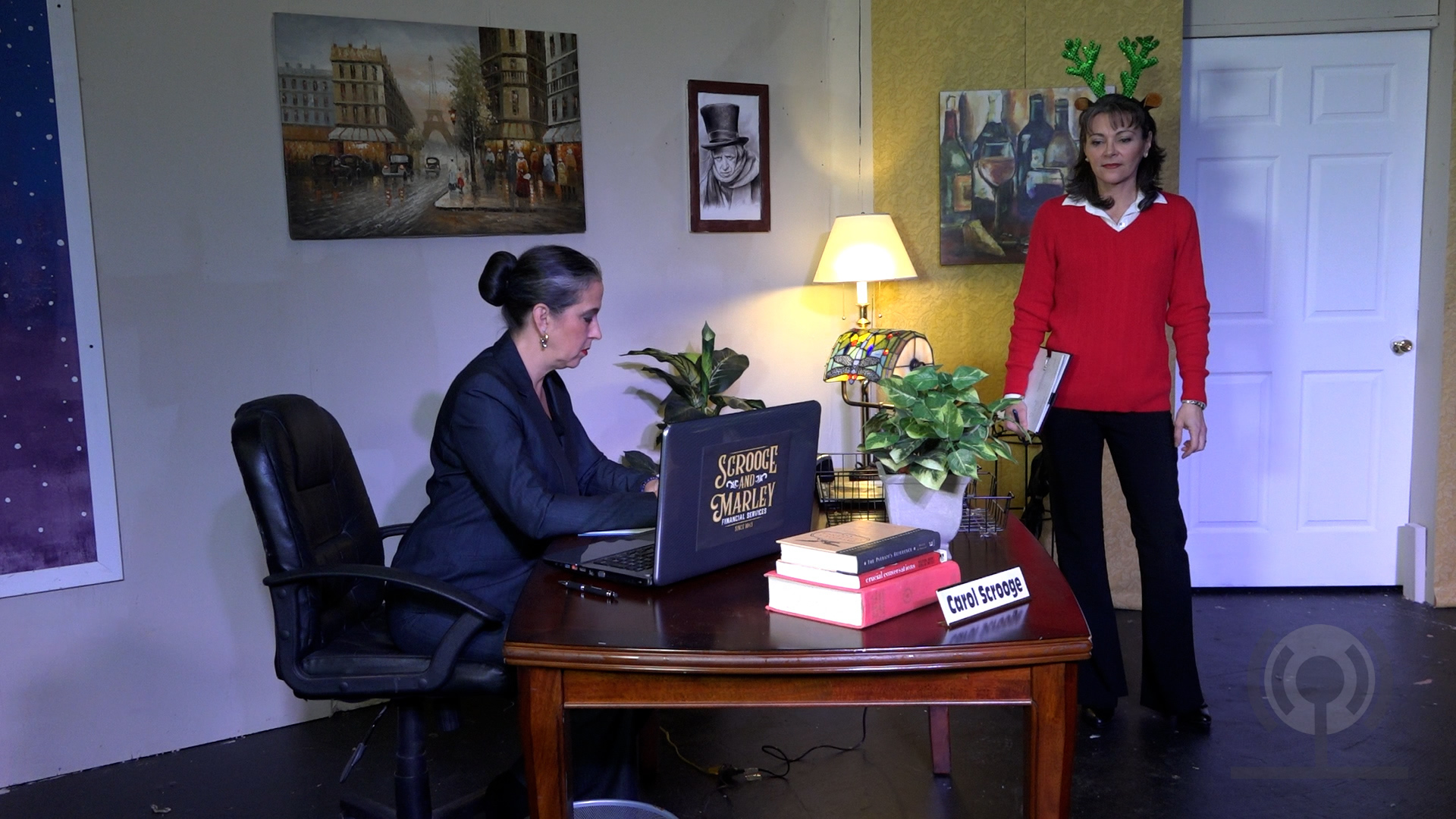 Unfortunately, the return of Ebenezer Scrooge could not happen in 2020, so in steps Carol Scrooge. “We needed something to show that Spotlight is still alive this Christmas. I poured over many scripts and considered asking Jeremy to adapt his 2019 script for a small cast, but eventually, I decided just to write one myself.” said playwright and director Chad Hembree. The new script entitled Christmas “Carol” features a small cast and takes a new spin on the classic tale. Starring Jennifer Rose Escobar, the story follows Carol Scrooge, a distant descendant of Ebenezer Scrooge. The Scrooge family has become synonymous with Christmas charity since Ebenezer’s frightful night, but the memories of the past have faded, and Carol is slipping back into the family’s old ways. Once again Jacob Marley returns to offer Carol the same chance to redeem herself as he did his dear friend and partner many decades ago. Just as before she is visited by three spirits all with lessons to share.